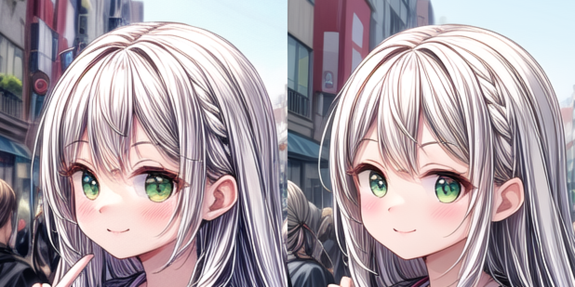 - ぼかし/背景ぼかしLoRAをマイナス適用することでシャープエフェクトをかけた出力
