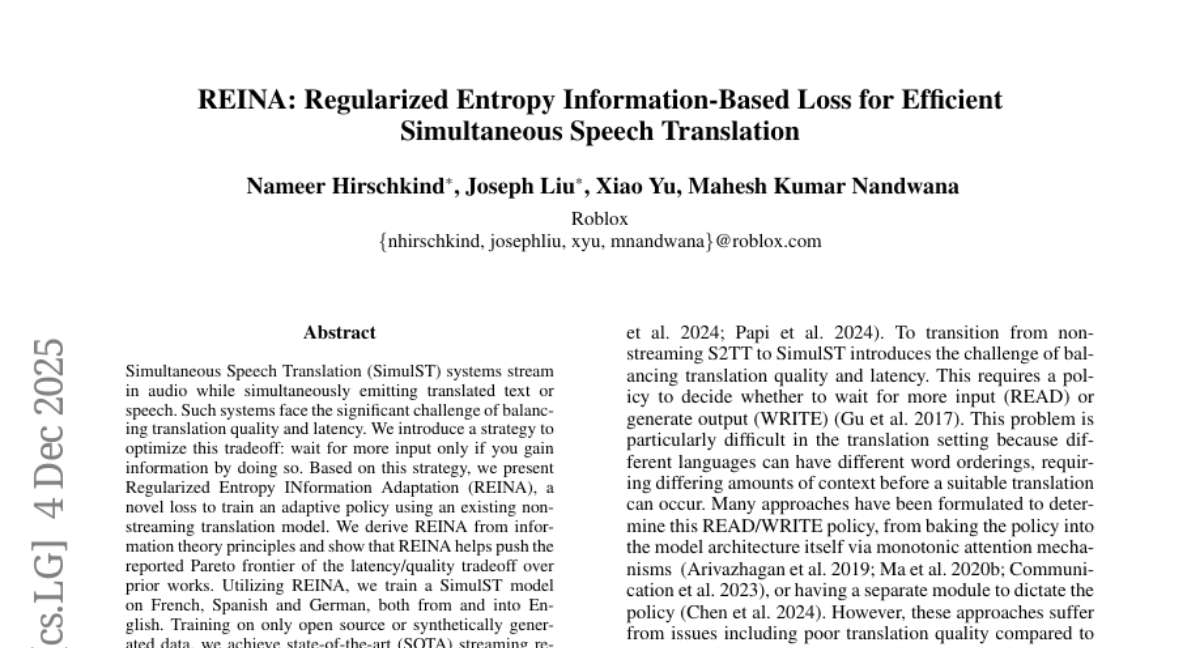 REINA: Regularized Entropy Information-Based Loss for Efficient Simultaneous Speech Translation