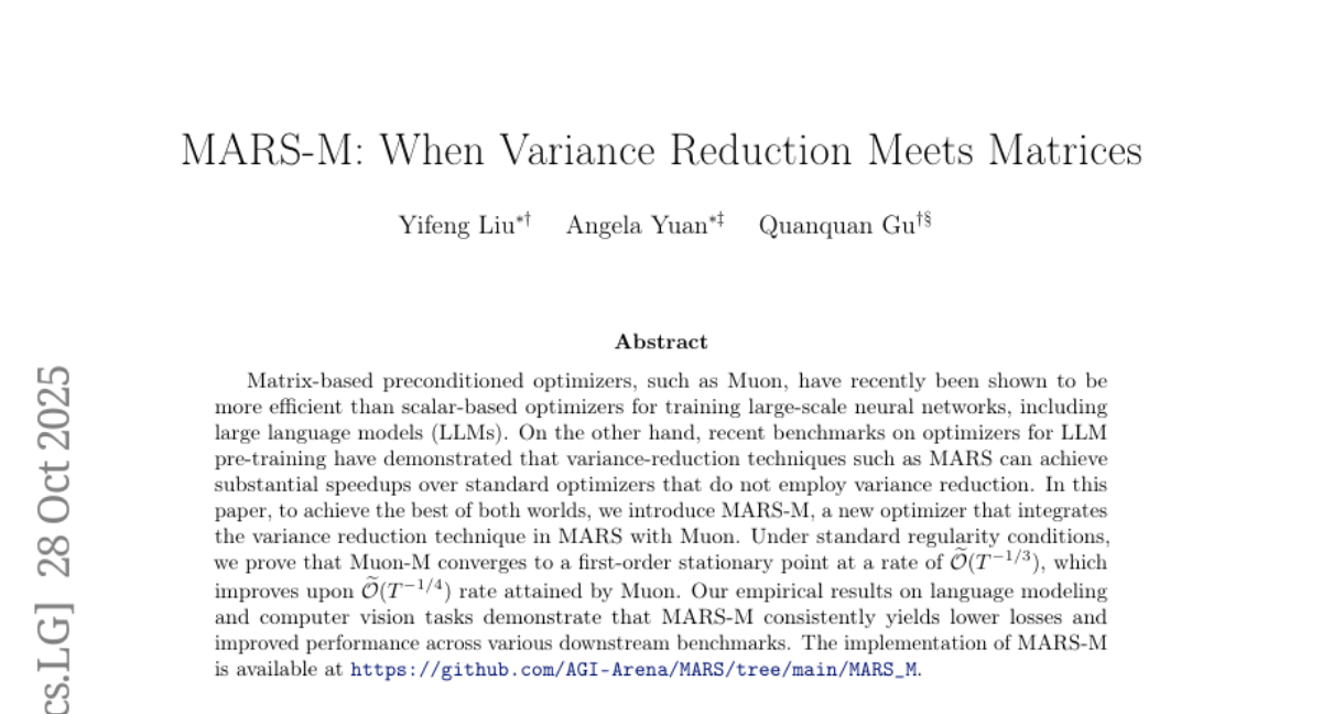 MARS-M: When Variance Reduction Meets Matrices