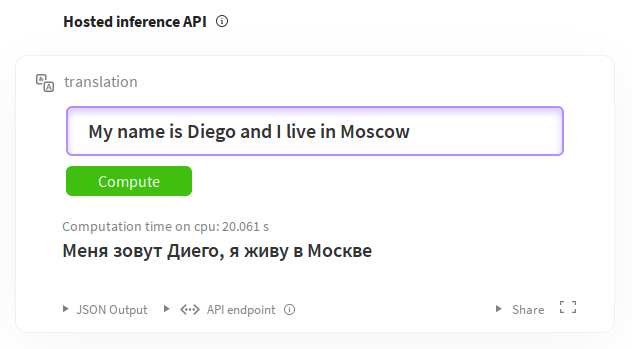 As you can see we define the languages, tags, license, datasets, and metrics. There is a full guide for writing these at Model sharing and uploading. The rest is the markdown document describing the model and its nuances. You can also try out the models directly from the model pages thanks to the Inference widgets. For example for English-to-russian translation: https://huggingface.co/facebook/wmt19-en-ru?text=My+name+is+Diego+and+I+live+in+Moscow.