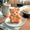 prompt="A croissant shaped like a cute bear.",