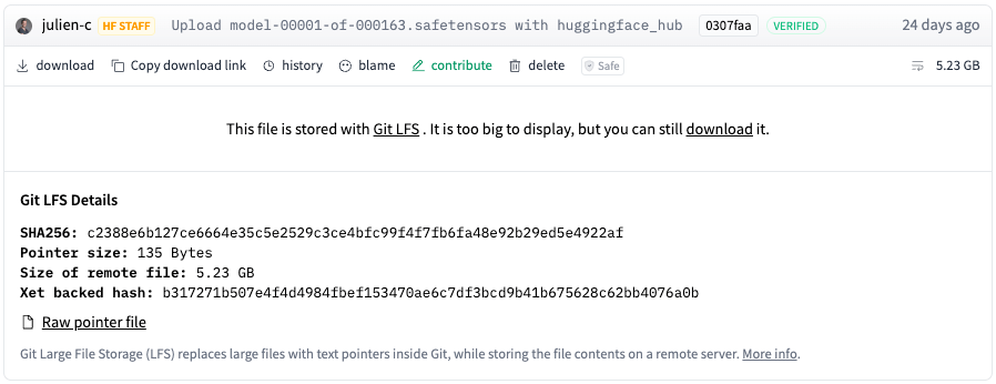 - SHA256: Provides a unique identifier for the actual large file. This identifier is generated by computing the SHA-256 hash of the file’s contents.